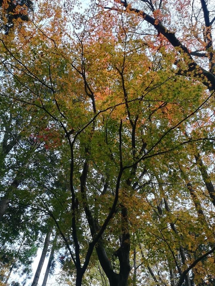 山の上のカエデは赤くなり落葉してますが、モミジはいつもより赤くなるのが遅れています。