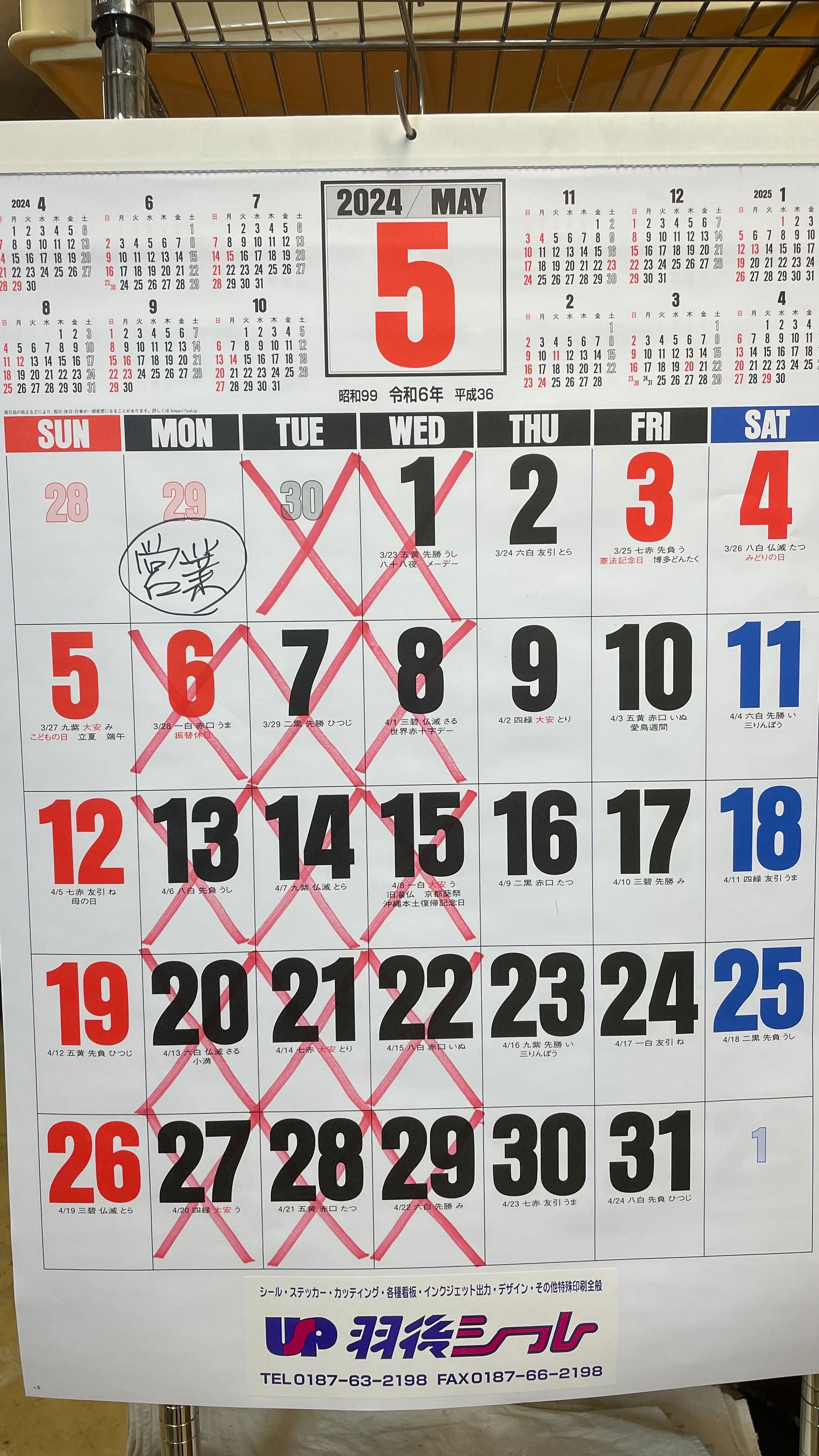 ゴールデンウィーク期間の4月29日月曜日は営業します。