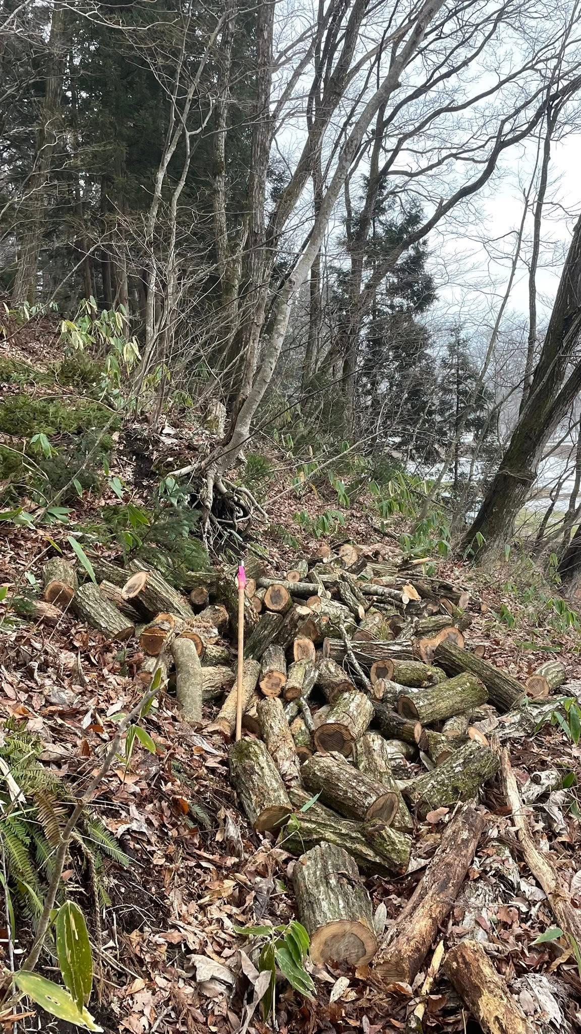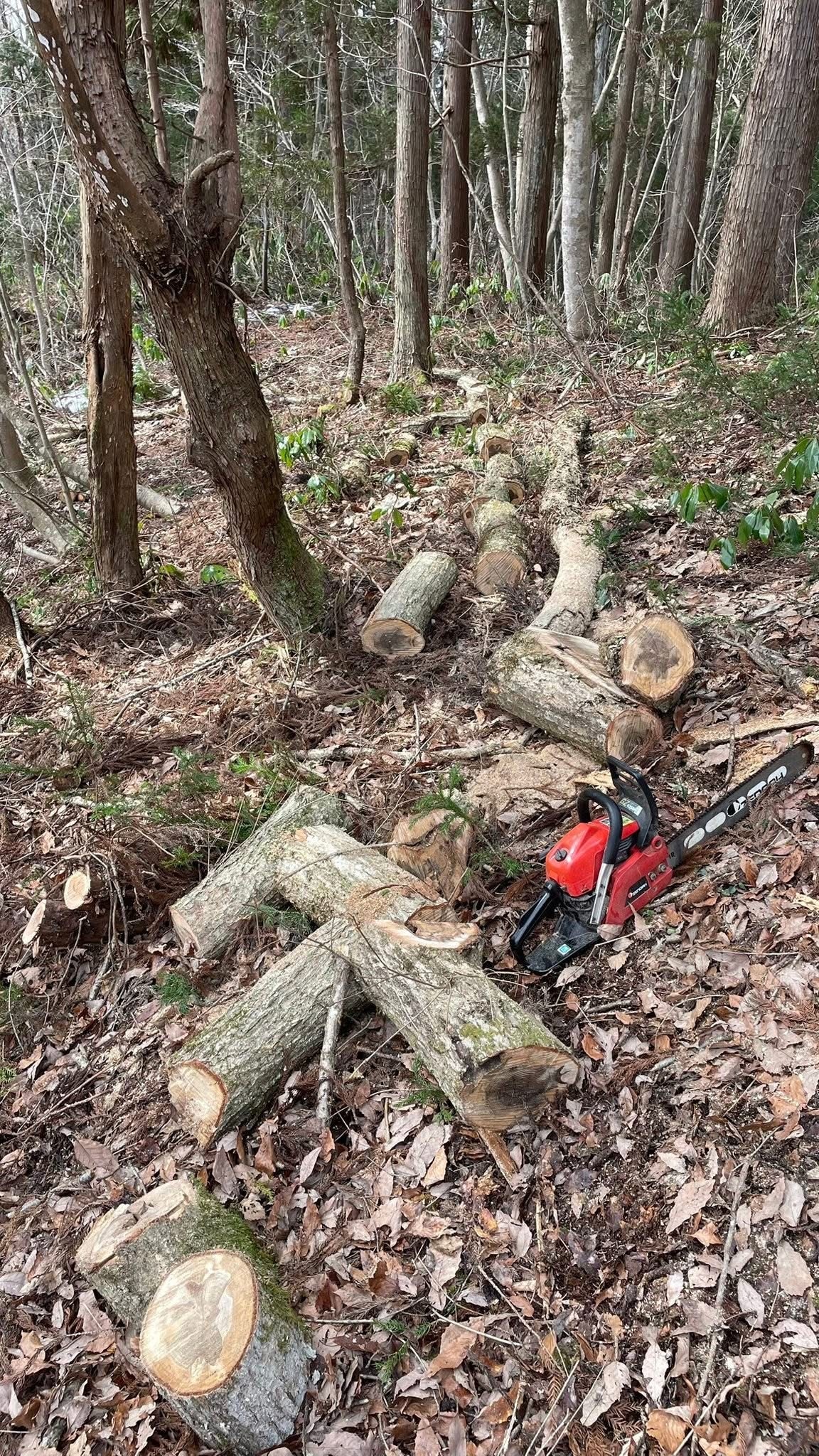まだ上の方に倒したのがあるので、また定休日に行って玉切りして斜面転がして下ろします。