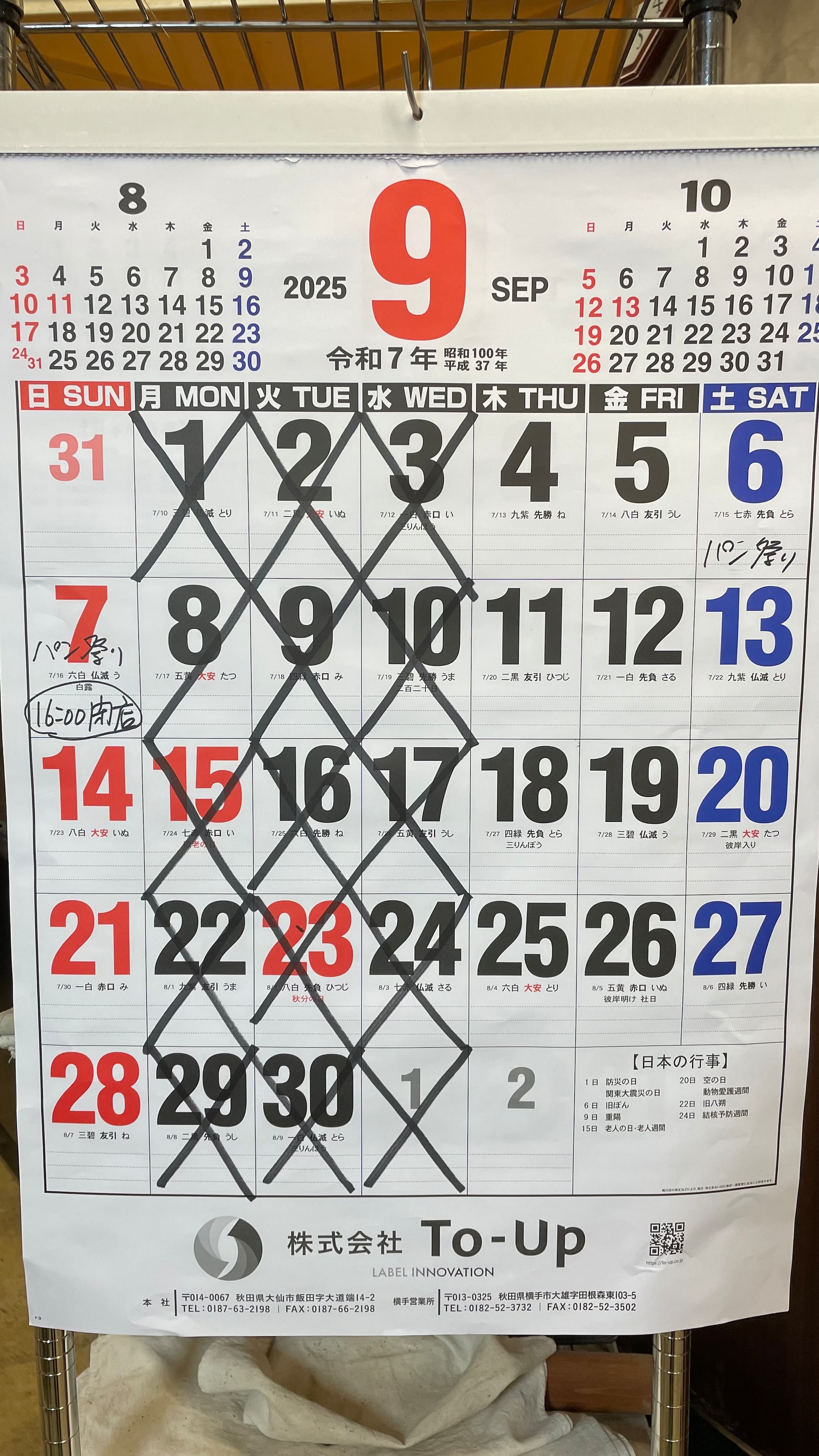 7日、日曜日は実家の角館でお祭りがあり、町内の当番もあるので16月閉店いたします。